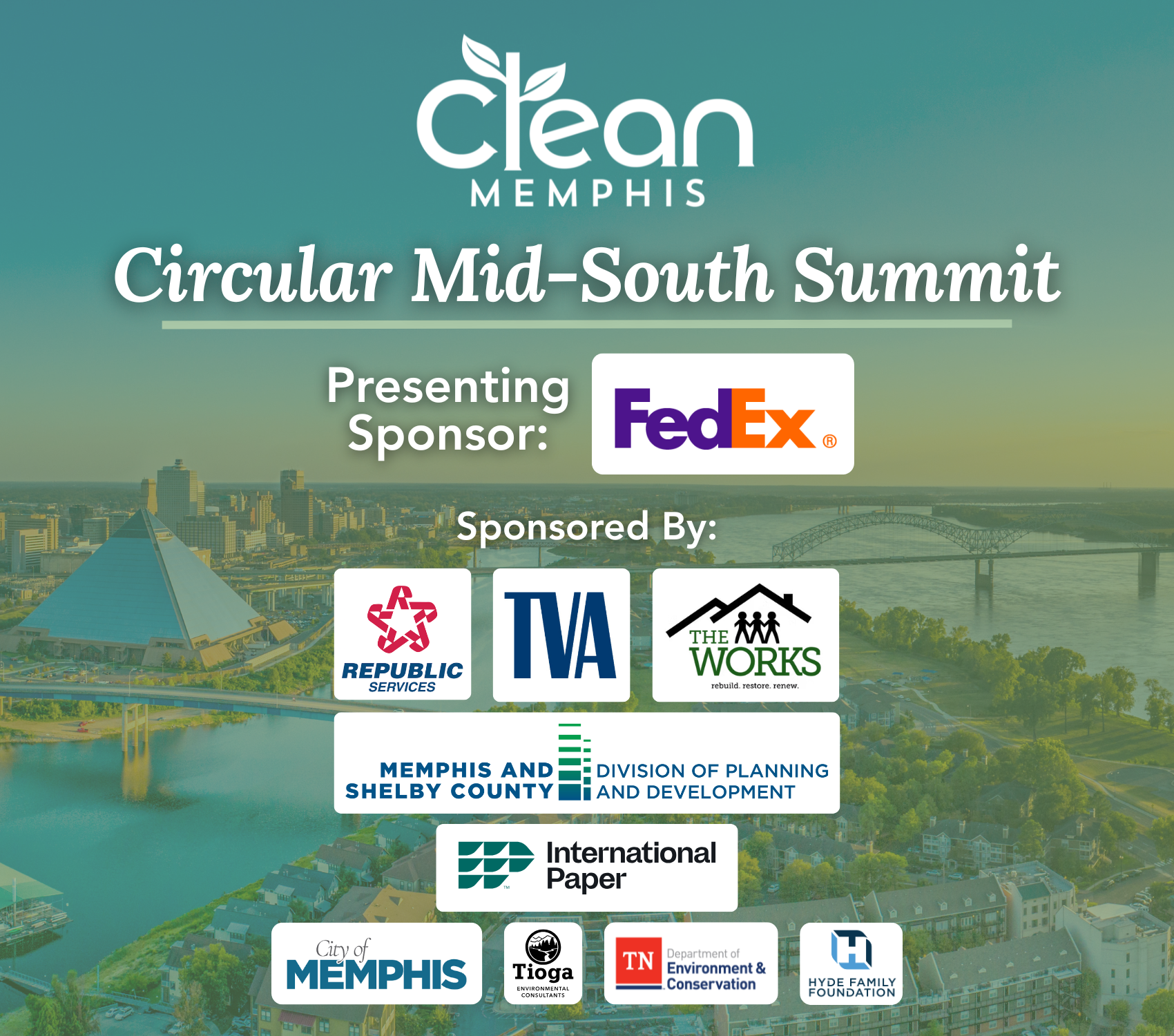 Clean Memphis would like to extend a huge thank you to all of our sponsors, participants, and everyone who could attend. The Circular Mid-South Summit was a landmark event designed to bring together businesses, community leaders, and innovators to facilitate actionable pathways for a circular economy that drives economic opportunity, innovation, and equity in Memphis and the Mid-South. This summit provided a platform for education, collaboration, and action, fostering a sustainable future for our region. We would love to have you join us and get involved in future efforts to develop a more circular economy in the Mid-South. Click the button below to find ways to stay involved, keep in touch, and/or offer some feedback on the 2025 summit.