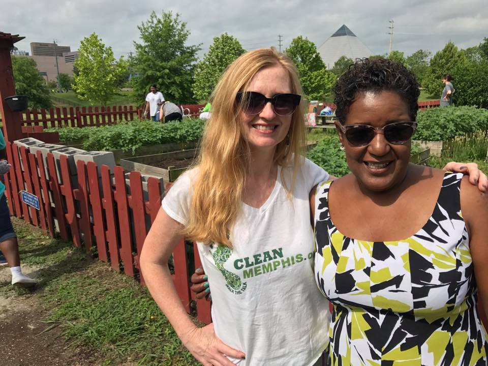 Clean Memphis Executive Director Janet Boscarino and Tanja Mitchell of The Works, Inc. at a garden spruce-up project